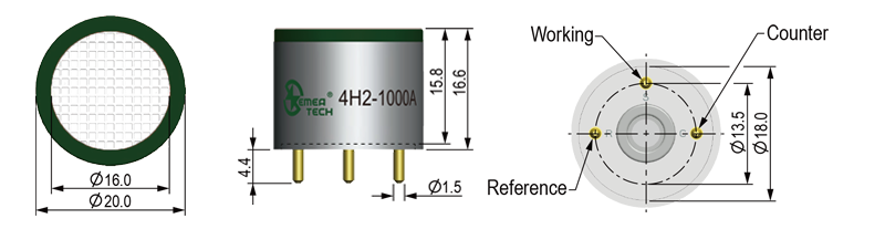 The sensor is designed to eliminate CO cross-sensitivity when measuring H2 concentration in the gas phase. It can be used as a pin-to-pin replace- ment for the standard 4-series electrochemical H2 sensor.