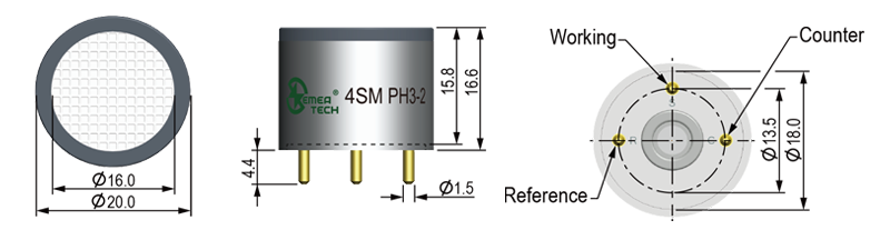 | Sensitivity (20℃) | 0.6 ± 0.2 μA/ppm |